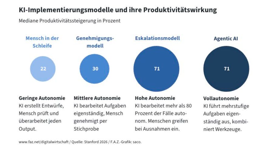 Zwischen KI-Vorreitern und dem Rest der Wirtschaft wächst der Abstand: Während wenige Spitzenunternehmen Produktivitätssteigerungen von bis zu 71 Prozent erzielen, bleibt der Großteil ohne sichtbaren Nutzen. Laut einer Stanford-Studie liegt das an der Produktivitäts-J-Kurve – anfangs bremsen Investitionen, bevor sie wirken. Entscheidender Hebel ist nicht die Technik, sondern der radikale Umbau von Prozessen, begleitet von Schulung und Management-Unterstützung. Fast zwei Drittel der erfolgreichen Projekte erleben Fehlschläge; am Ende gewinnt, wer iterativ lernt und bereit ist, sich konsequent neu zu erfinden.