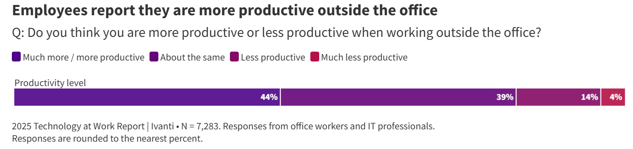 Ivanti zeigt in einer aktuellen Studie, dass der Druck zur Rückkehr ins Büro bei IT-Mitarbeitern besonders hoch ist, obwohl 82 % der Büroangestellten außerhalb des Büros mindestens genauso produktiv sind. Strikte Präsenzpflichten senken Moral und Zufriedenheit, während Flexibilität – etwa flexible Arbeitszeiten und Autonomie – für 73 % der Angestellten essenziell ist. Dennoch klafft eine große Lücke zwischen gewünschter und tatsächlicher Flexibilität. Gleichzeitig kämpfen Unternehmen mit IT-Komplexität, ineffizientem Technologieeinsatz und fragmentierter KI-Nutzung. Erfolgreiche Firmen setzen auf ausgewogene Strategien, die Technologie zur Optimierung nutzen und zugleich Mitarbeitende empowern – für mehr Produktivität, Sicherheit und Arbeitszufriedenheit.