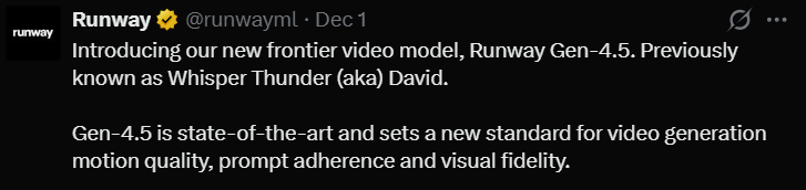 Runway Gen-4.5: Neue Spitze der Video-KI
